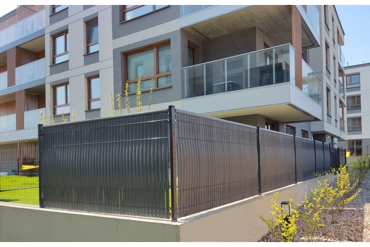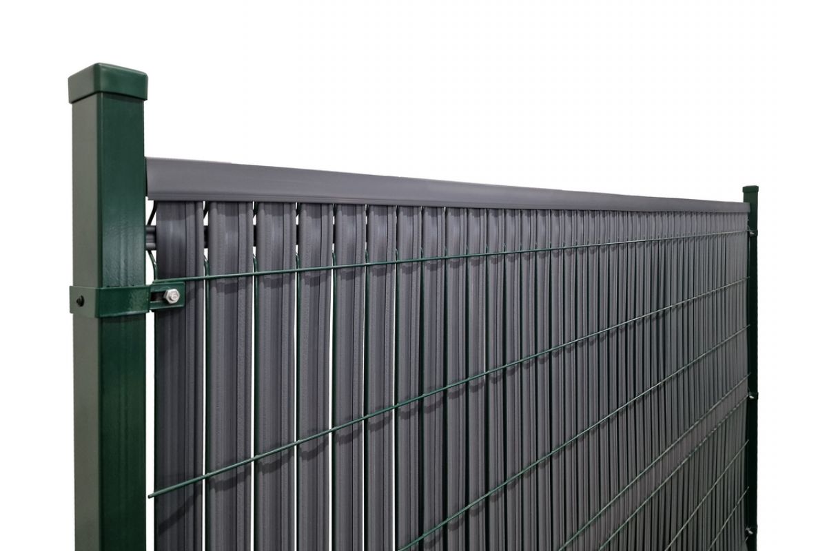 Prosty montaż do istniejących ogrodzeń. Dostosowana przęseł panelowych o wysokości 153 cm i długości 250 cm listwa pozioma jest dzielona na dwie części. W komplecie 50 listew pionowych i 6 listwy poziome. Możliwość regulacji szerokości listwy od 44 do 62 mm