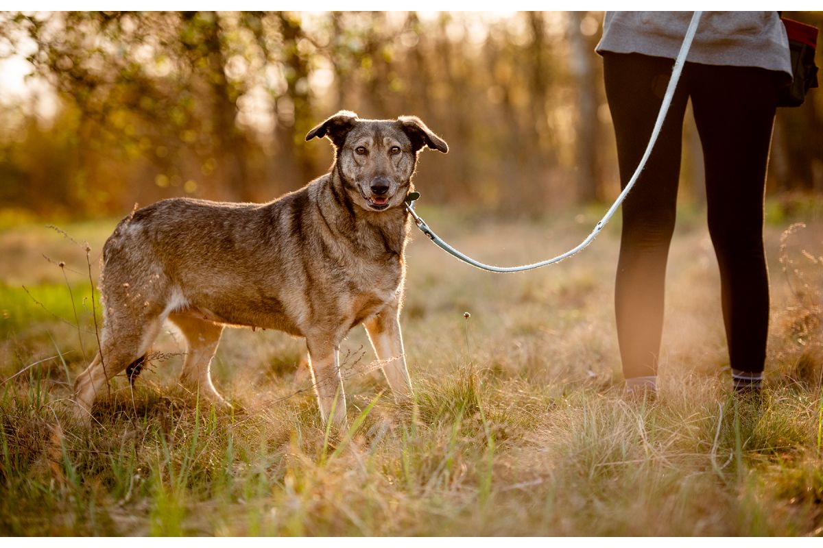 Karinka uczy się chodzić na smyczy - póki co ją to paraliżuje, dlatego mile widziany dom z ogrodem.