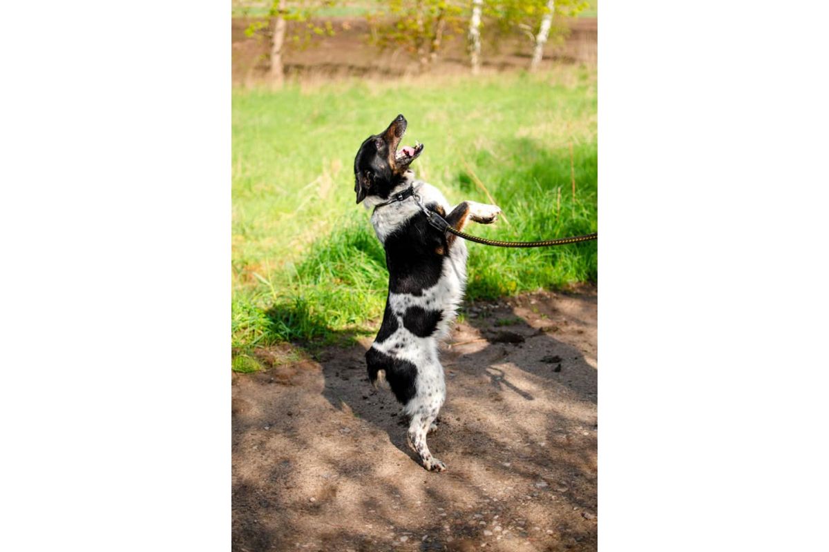 Łatek to około 6-letni pies, z którym można by "konie kraść". Pełen radości, energii i miłości do ludzi. Gdy widzi człowieka, wygina się w różne strony, błaga o głaskanie i cieszy się całym sobą. To pewny siebie, odważny chłopak – jeśli coś mu się nie podoba, potrafi postawić na swoim i obszczekać innego psa. Jego największa miłość? Człowiek… i PATYK! Nasza schroniskowa „krówka” dosłownie szaleje na widok podniesionego kija – staje na dwóch łapach, merda malutkim ogonkiem i czeka na zabawę. To sprawia mu ogromną radość! Łatek pięknie chodzi na smyczy, zna podstawowe komendy i prawdopodobnie miał już kiedyś swój dom.
