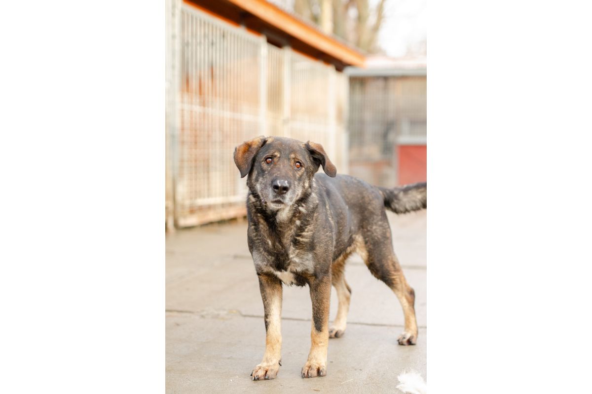 Gaja trafiła do schroniska ubiegłego roku w wyniku interwencji. Odebrane psy były skrajnie zaniedbane. Małymi kroczkami psy zaczęły nabierać na wadze i wychodzić na światło dzienne do ludzi.