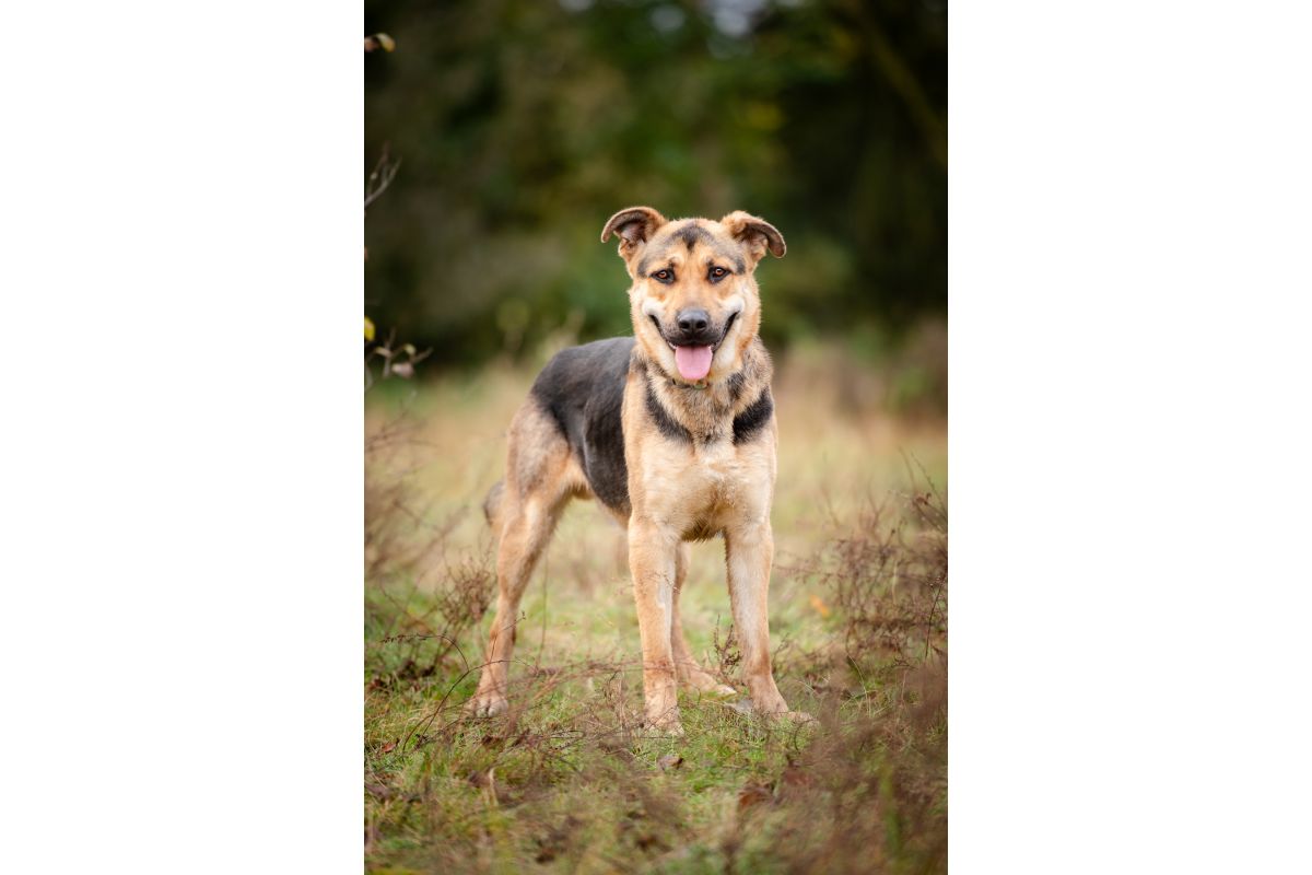 Moje duże łapy potrafią delikatnie prosić o uwagę, a wielki ogon merda tak mocno, że aż cała buda się trzęsie, gdy tylko widzę osobe, która weźmie mnie na spacer.
