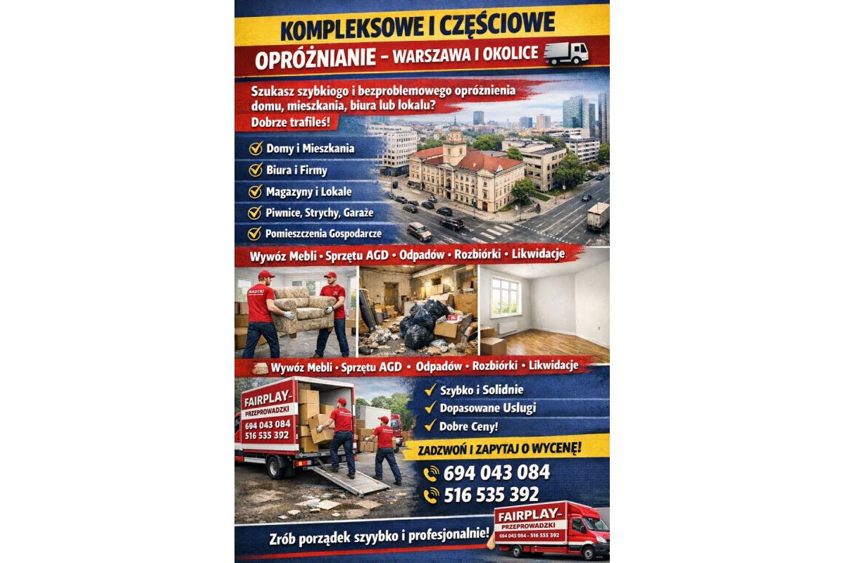 Opróżnianie Mieszkań, Piwnic,+ Wywóz Śmieci + Przeprowadzki | Warszawa i okolice