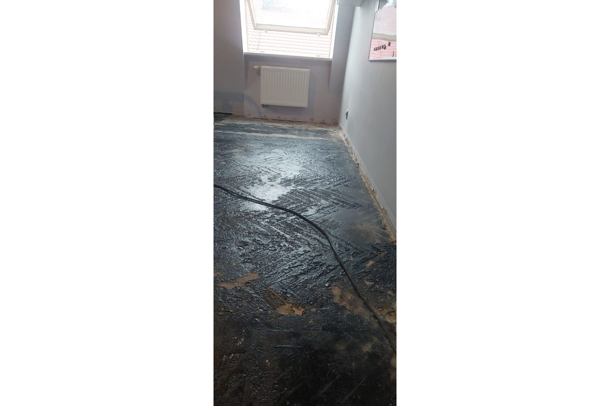 Usuwanie subitu-czarnej smoły, czyszczenie klejów po płytkach, skuwanie płytek, flizu.