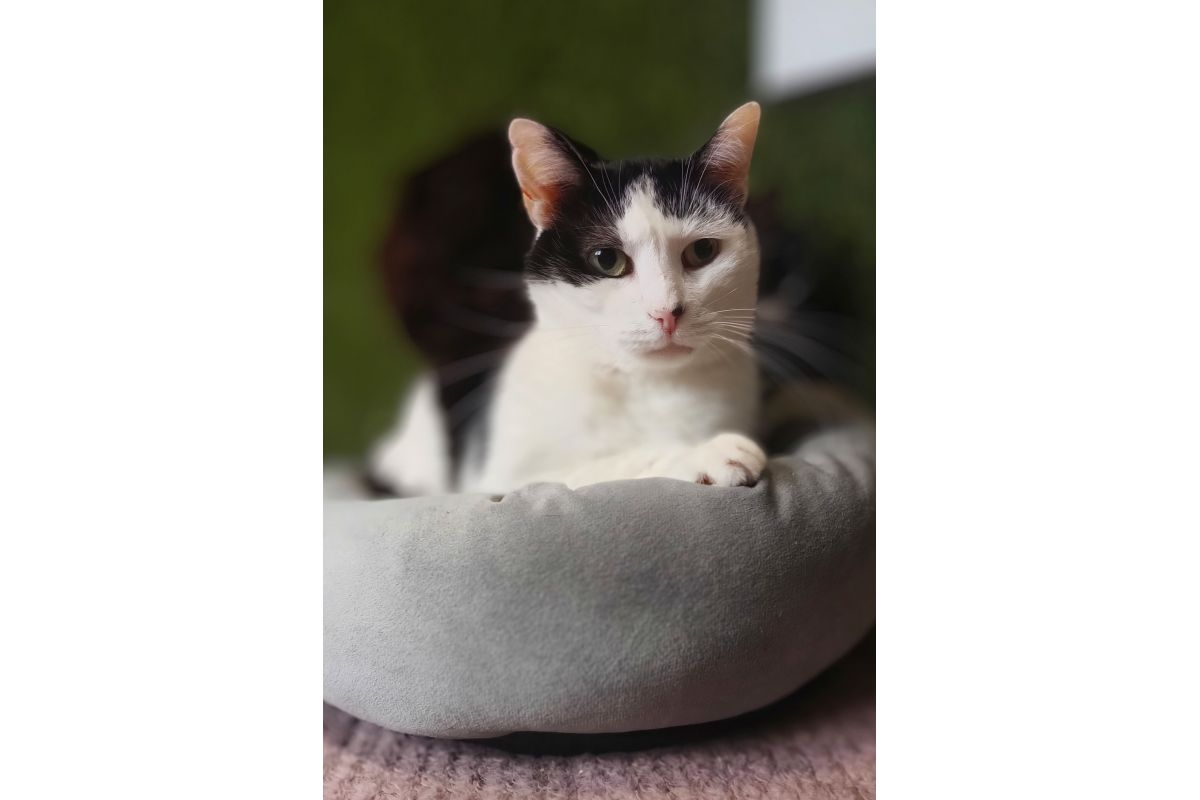 To bardzo spokojny i łagodny kot. Nie domaga się uwagi, nie narzuca się człowiekowi, ale widać, że w głębi serca pragnie czułości i poczucia bezpieczeństwa. Potrzebuje tylko czasu, by zaufać i się otworzyć. Nie jest typem rozrabiaki – to kocurek idealny dla kogoś, kto szuka towarzysza do spokojnego życia.